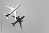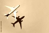 Model plane, airplane on sky blue background with deep shadow