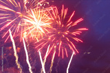 Brightly colorful fireworks and salute of various colors in the night sky. Independence Day, 4th of July, Fourth of July or New Year.