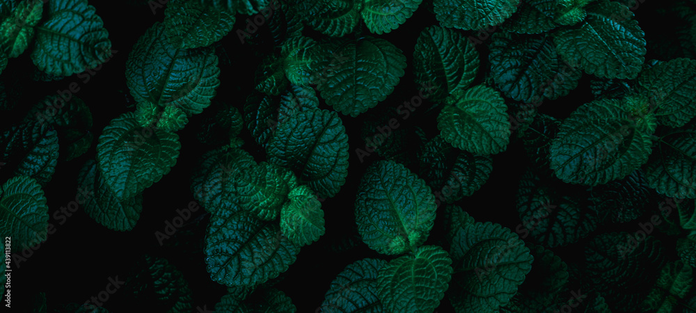 closeup tropical green leaf background. Flat lay, fresh wallpaper banner concept