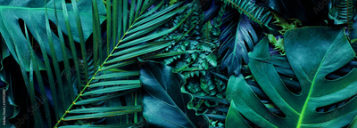 closeup tropical green leaf background. Flat lay, fresh wallpaper banner concept