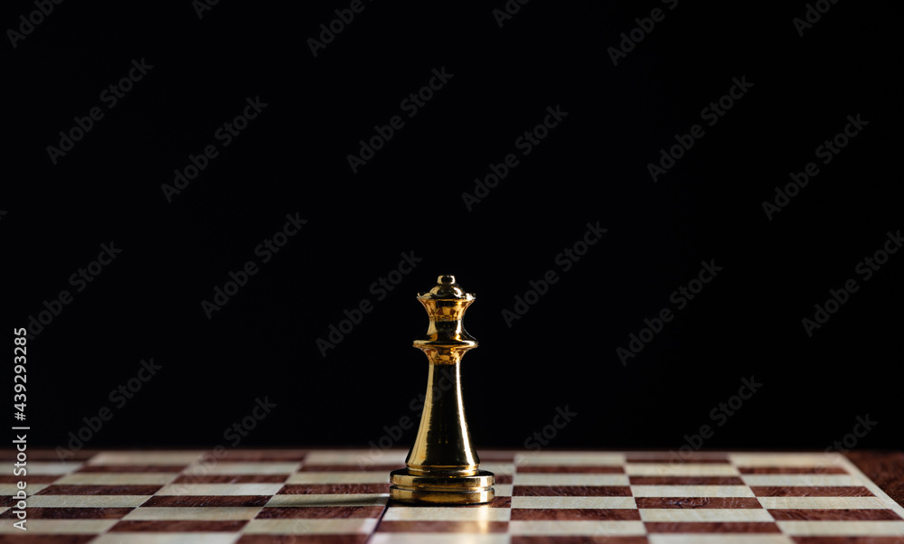 Golden queen chess figure on chessboard
