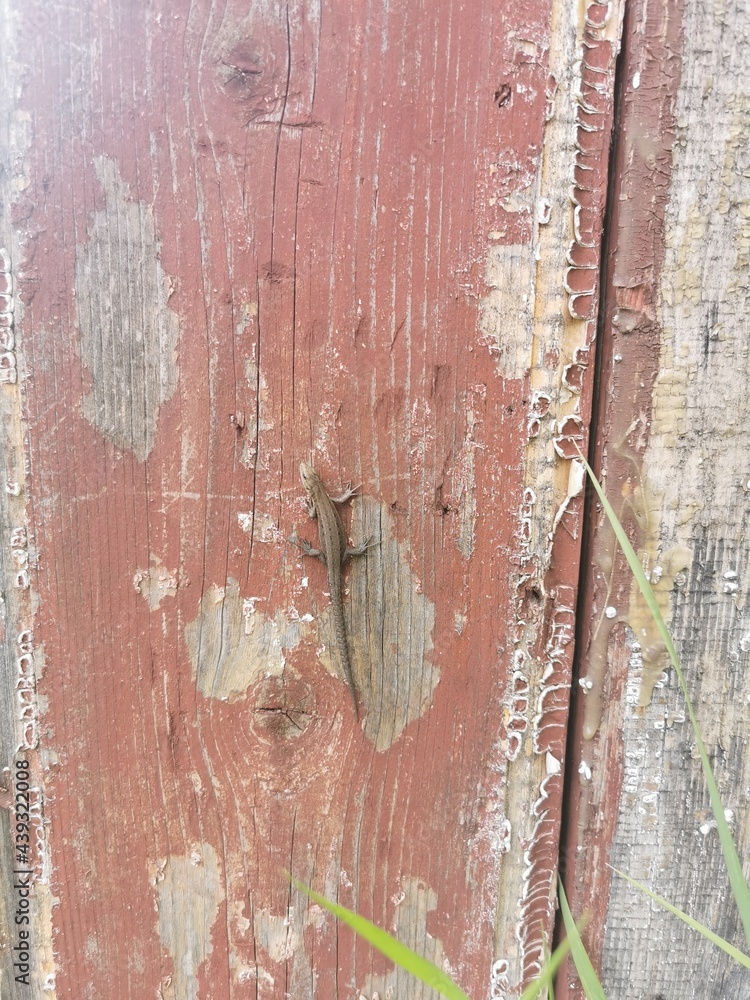 A lizard on an old wooden board