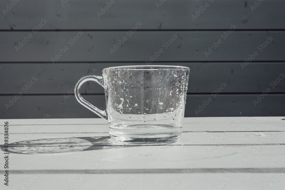 Washed glassware. Transparent glass cup.