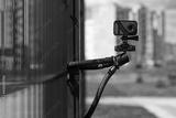 Compact action camera on a flexible tripod. Outdoor travel equipment.