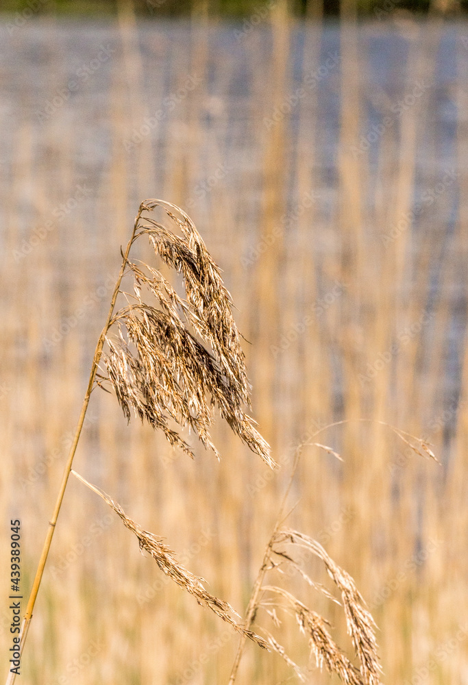 Summer grasses blowing in the wind on the edge of Pickmere Lake, Pickmere, Knutsford, Cheshire