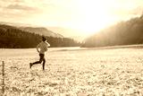 Athlete woman runs in the spring forest. Young female runner jogging exercise outdoors in the morning. Workout for marathon and fitness.