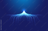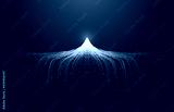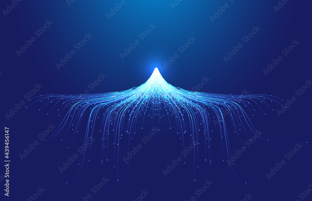 Line particles converge in the shape of snow and ice peaks Internet technology background.