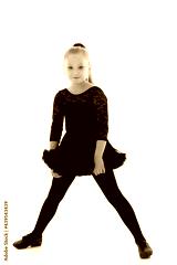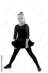 Cute little girl gymnast getting ready to perform a difficult exercise.