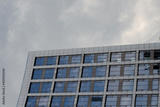 Facade of a building in the American style. Building in Chicago. Minimalistic architecture. Exterior. Concrete building.