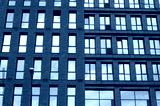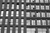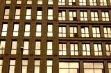 Facade of a building in the American style. Building in Chicago. Minimalistic architecture. Exterior. Concrete building.