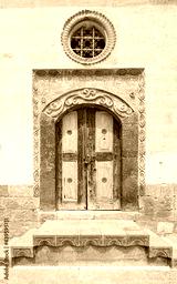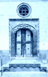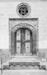 Ancient wooden door on a stone made wall - Mustafapasa, Cappadocia