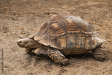 African Spurred Tortoise - Centrochelys sulcata, large tortoise from African bushes, woodlands and grasslands, lake Langano, Ethiopia.
