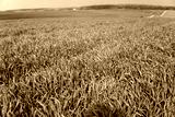 Field of young green wheat seedlings. Sprouts of young barley or wheat that have sprouted in the soil. Close up on sprouting rye on a field. Sprouts of rye. Agriculture, cultivation.