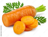 sliced carrot with green leaves isolated on white background. clipping path.