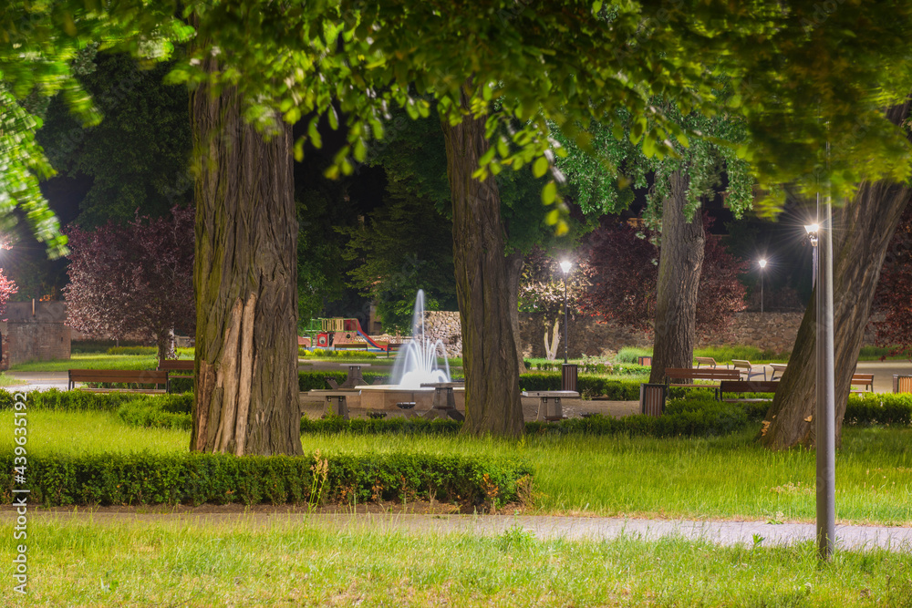Żagań, plac imienia generała Maczka. Widok w nocy.