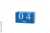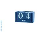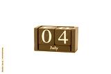 Classic wooden calendar isolated on white background with date 4th of July - Independence Day