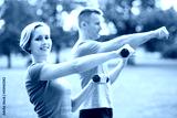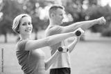 Couple exercising with dumbbells