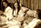 Young women spending time in spa resort hotel salon, caucasian girlfriends enjoying herbal tea. Body care,wellness and relaxing concept