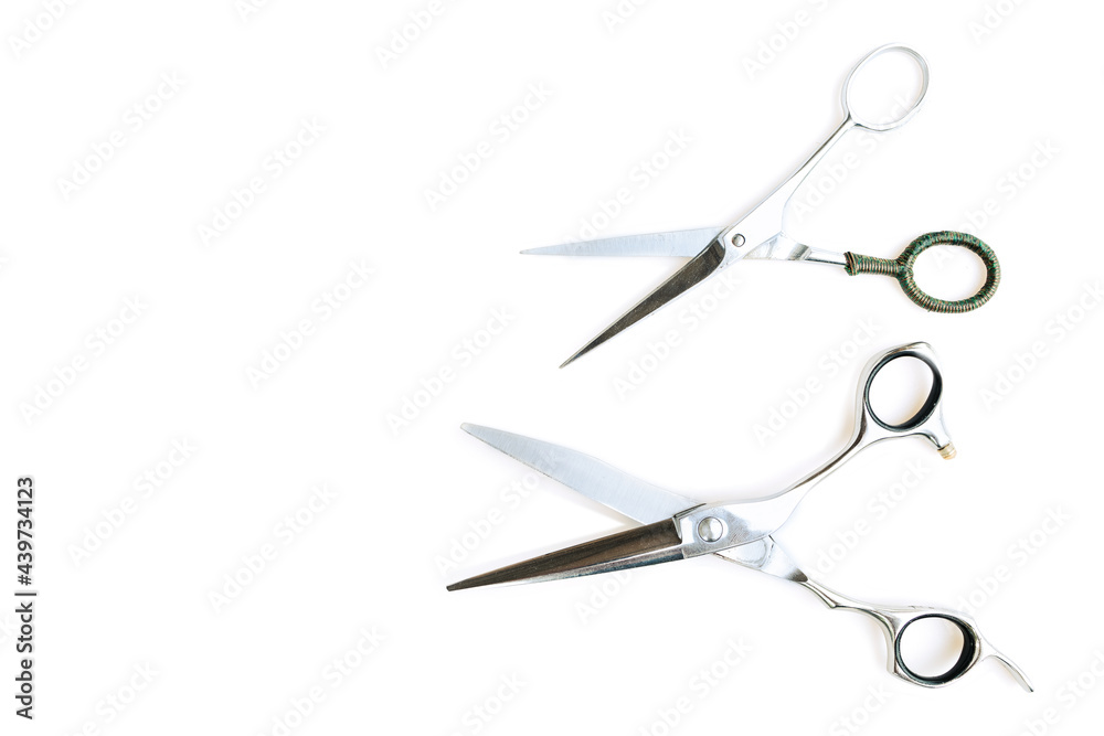 A set of hair cut tools on white background for cutting barber beard salon