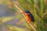 Malachite Kingfisher - Corythornis cristatus, beautiful small blue and orange river kingfisher from African rivers and mangrove, lake Awassa, Ethiopia.