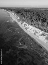 Steep shore with trees in sunny summer evening. Photographed from above. Labrags, Latvia.