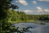Kazdanga village mill lake in sunny summer day, Latvia.