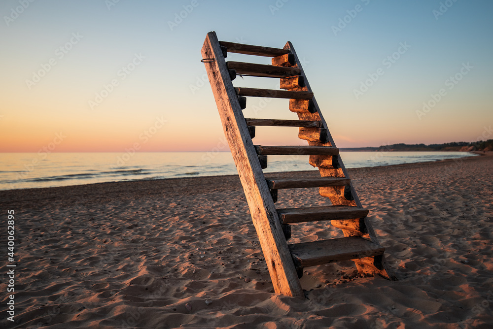 Stairs buried in the ground on the beach, Labrags, Latvia.