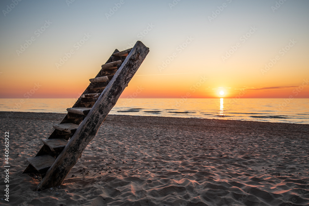 Stairs buried in the ground on the beach, Labrags, Latvia.