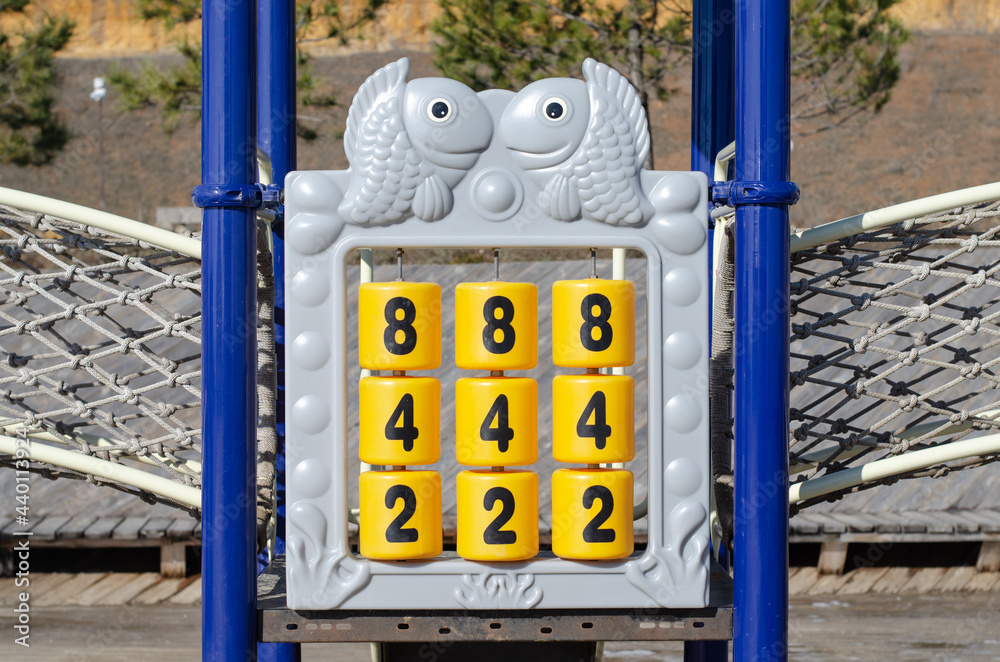 Children playground. Table game. Children's toy. Figures. A toy for logic. Matimatic game. Digital combination.
