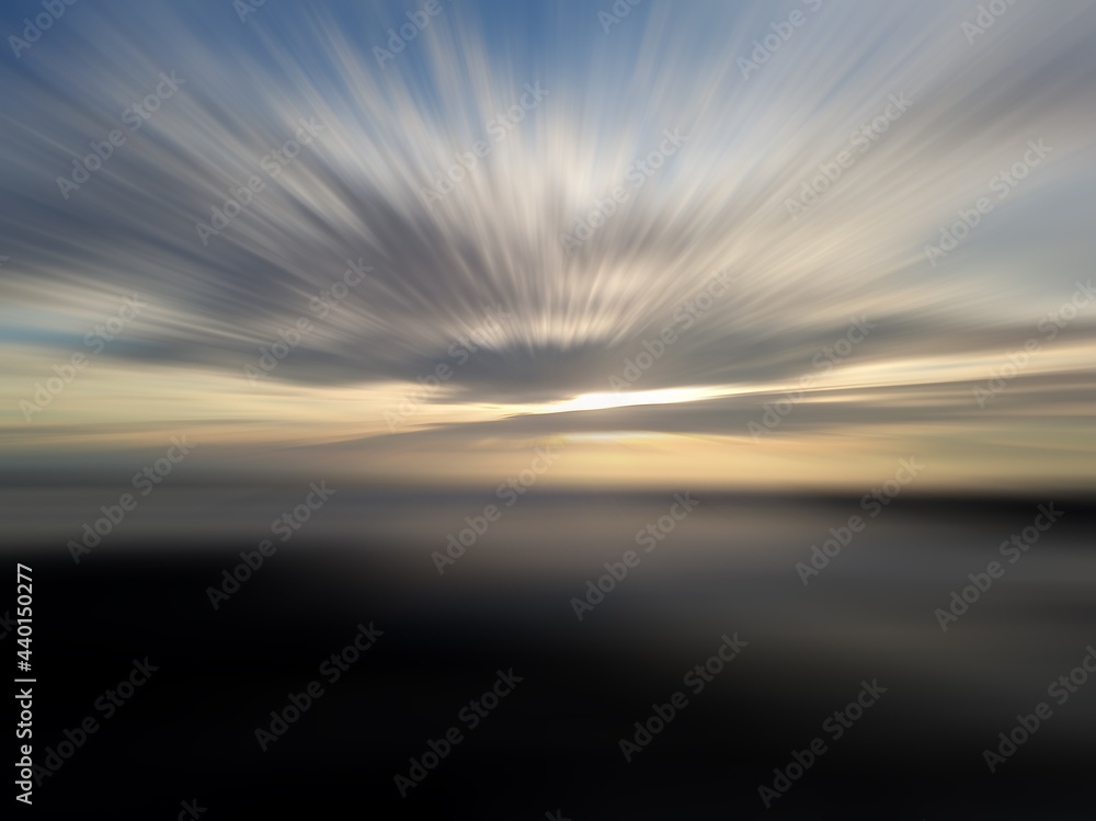 Sunset over the sea horizon. Beach landscape background with rushing clouds at sunset sunrise. Inspirational natural backgrounds with nature.