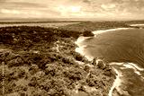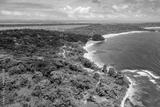 Tropical Island Aerial View. Wild coastline lush exotic green jungle. Red Frog Beach in Bastimentos Island, Bocas del Toro, Central America, Panama.