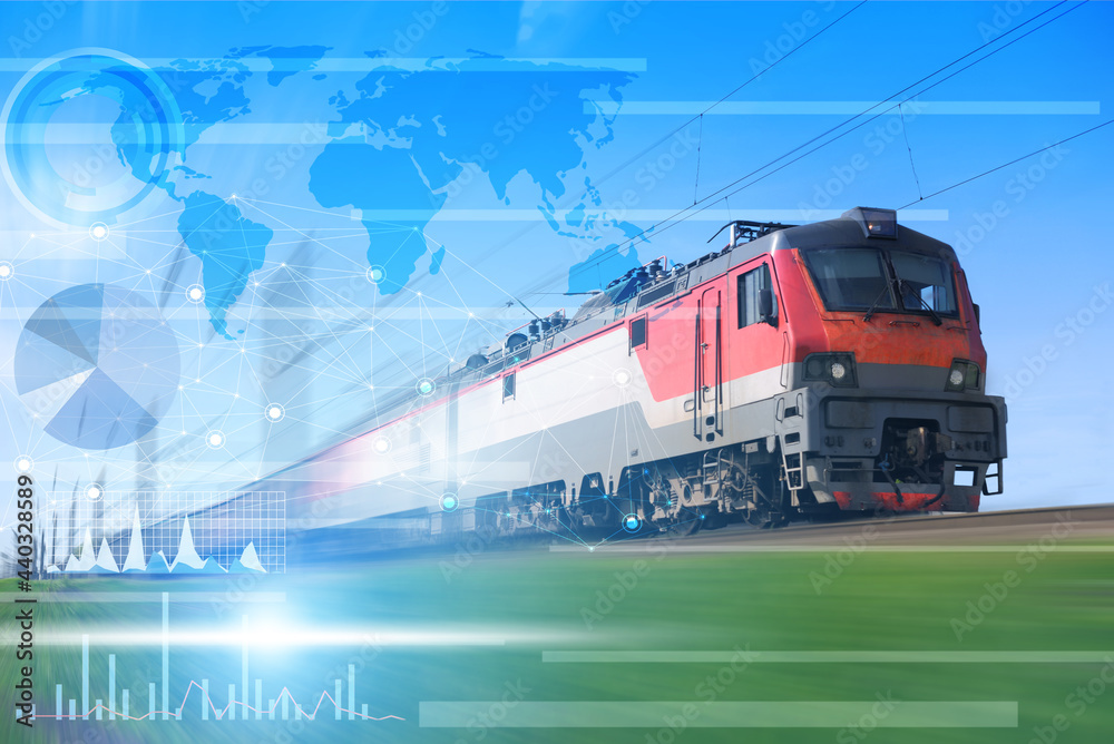 logistics concept using modern technology and artificial intelligence to reduce overhead and increase revenue. Transport logistics rail and air transportation