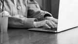 Close Up of Unrecognizable Woman Working on Laptop at a Cafe Table, Female Student Using Her Notebook for Study at Coffee Shop