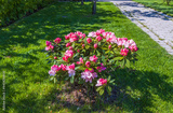 Beautiful view of blooming pink rhododendron flower. Gardening concept.
