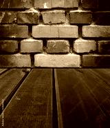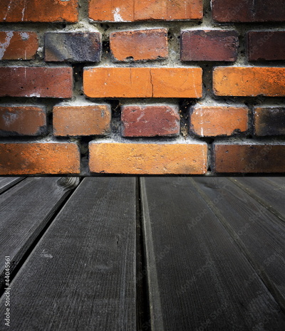 Old wooden dark scene and an old brick wall, background