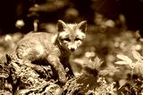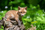 Red fox, vulpes vulpes, small young cub in forest. Cute little wild predators in natural environment