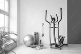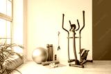 Different sports equipment and fitness ball in gym