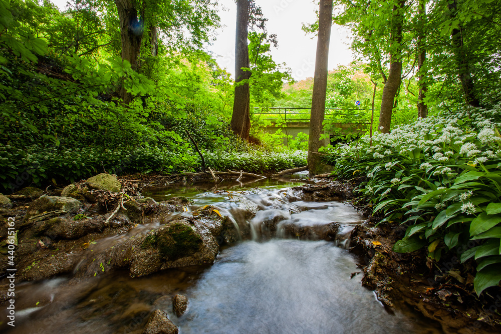 small river in green forest