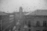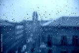 rain drops on the window surface with street view