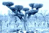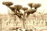 The old olive tree was pruned decoratively and added visual aesthetics to the garden.
