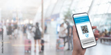 Traveler shows health passport of vaccination certification on mobile phone via mobile app at international airport, to certify that have been vaccinated of coronavirus covid-19, vaccine passport