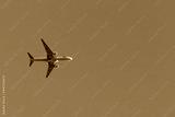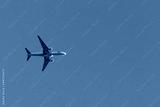 Airplane in the sky. Clear, cloudless sky. Air travel.