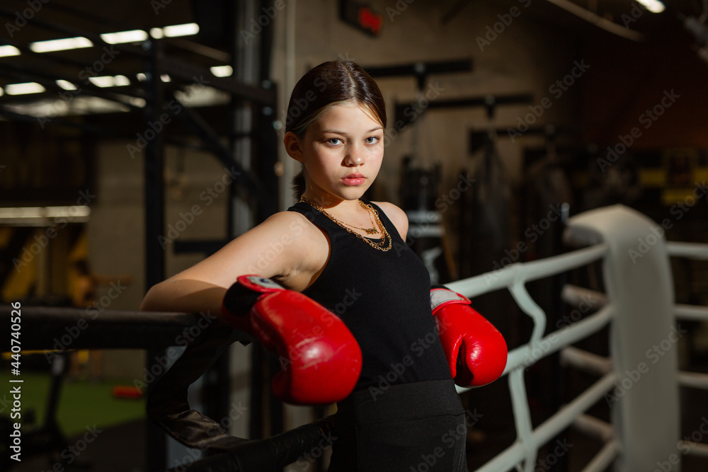 beautiful young woman at boxing training in the gym