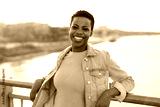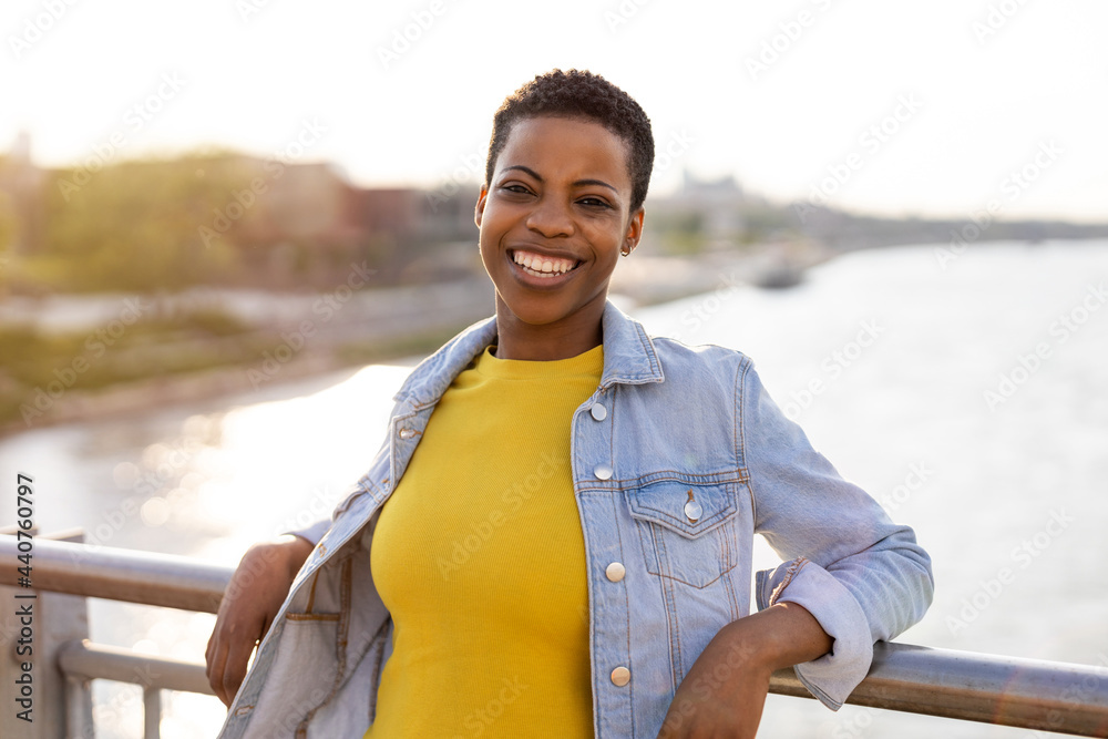 Smiling young woman enjoying the outdoors at sunset