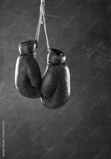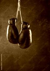 Old boxing gloves hanging on a wall
