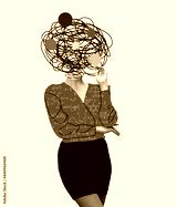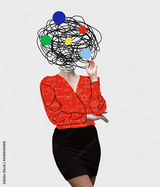 Chaos in woman's head and hurricane of thoughts. Modern design, contemporary art collage. Inspiration, idea, trendy urban magazine style. Line art