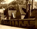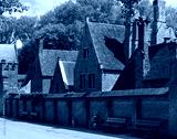 European small street with old brick houses in a bright sunny da