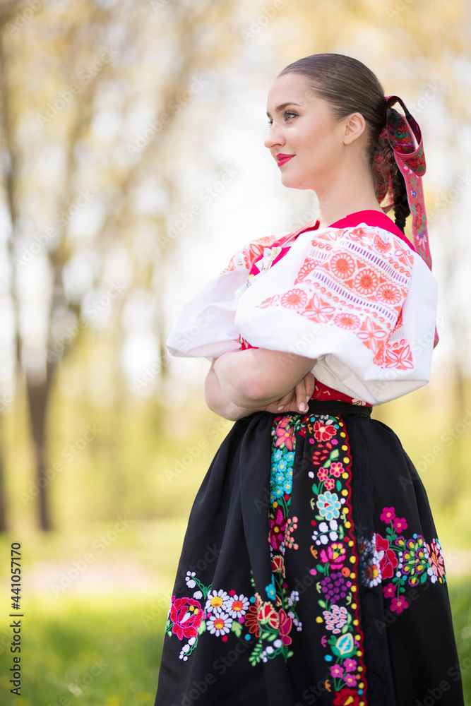Belle jeune femme slovaque en costume traditionnel. folklore slovaque