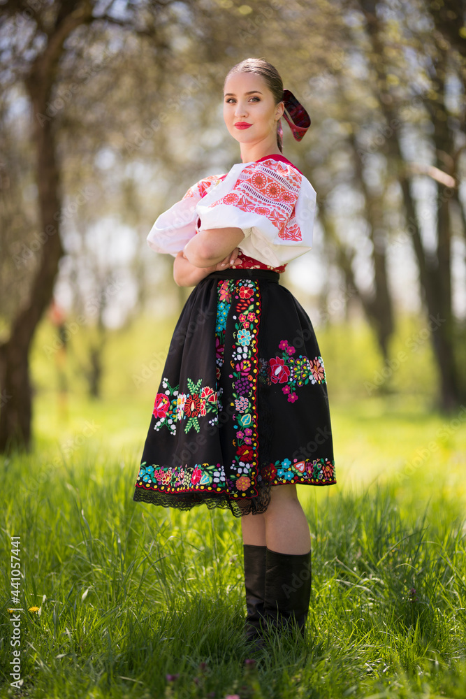 Belle jeune femme slovaque en costume traditionnel. folklore slovaque