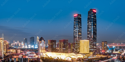 Night view of twin towers and city skyline in Kunming, Yunnan, China